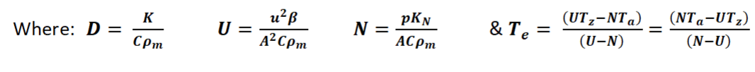 This describes the balance between spatial and temporal time constants for the thermal mass under the influence of U (variation of resistive heating with temperature) and N (variation of Newtonian cooling with temperature). Remember however that this applies to the Z portion of temperature; i.e. without any offset. Immediately obvious from the CSE is the parabolic relationship between real values for w and k when w – (U – N) ≥ 0. Also clear from the CSE is the situation where U < N and K ~0 to give w < 0 in (106) with temperature converging towards equilibrium at T = Te.