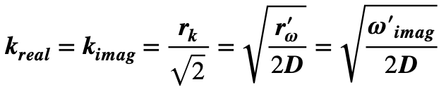 Whilst U, N, D, relate to defined physical parameters and remain both real and positive, w k are exponential coefficients which may be real, imaginary or complex. The value of the spatial coefficient, k, can hence be pictured in an Argand diagram as a complex number derived from w’/D with the square root of the modulus and half the argument. In 105 & 106 the formulae for temperature, temporal and spatial coefficients w and k provide real and imaginary contributions to the exponent. The sign and magnitude of the real components indicate rates of heat flux which determine whether the functions grow or shrink over time and distance. The imaginary contributions represent wave behaviour as combinations of temporal oscillation and spatial undulation.
