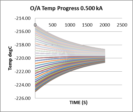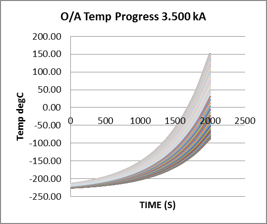 Fig 02a: Initial FEA Result for 81% Cross-Section over 250cm of 500cm Conductor; Amb. = 0°C.