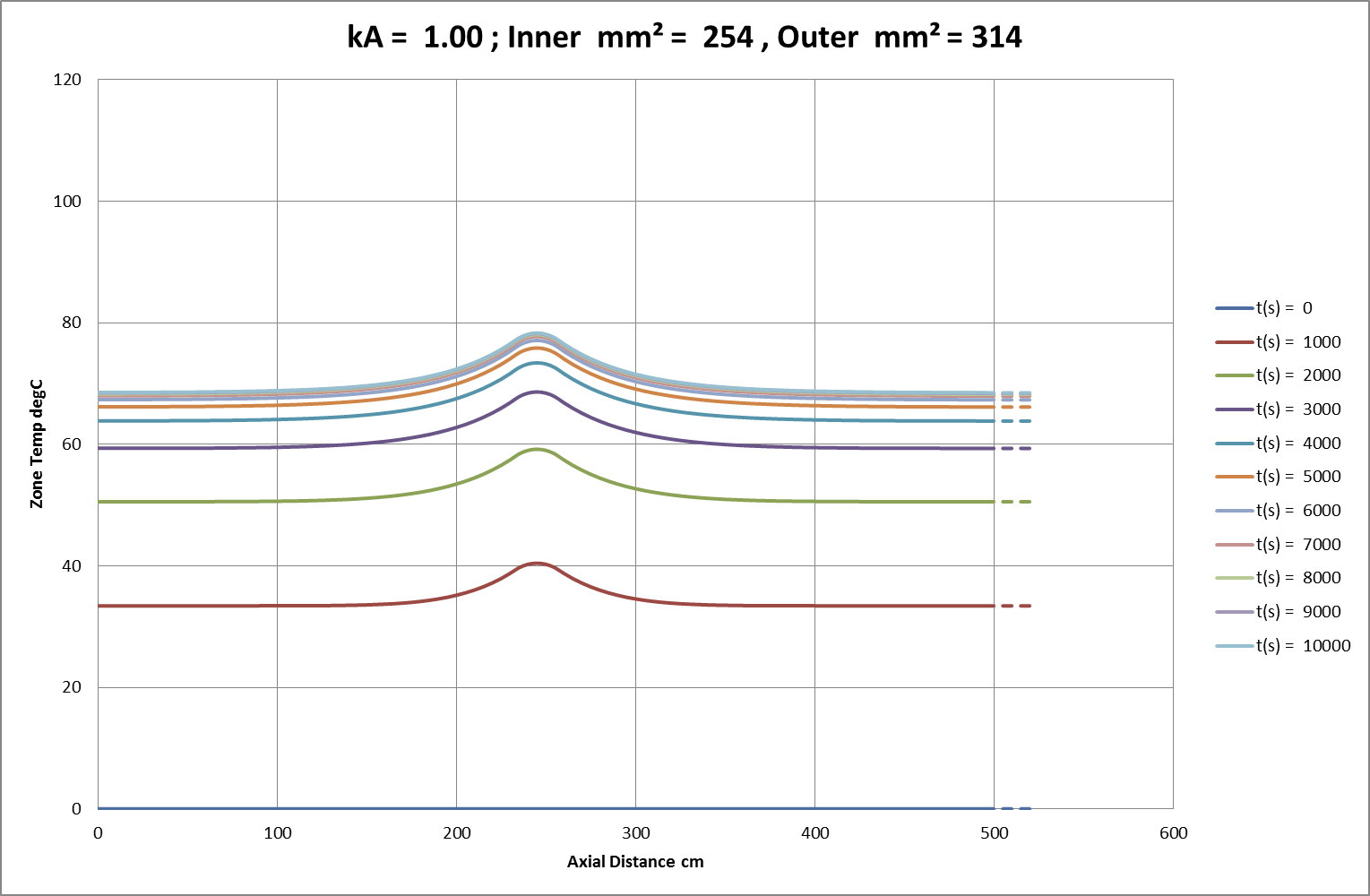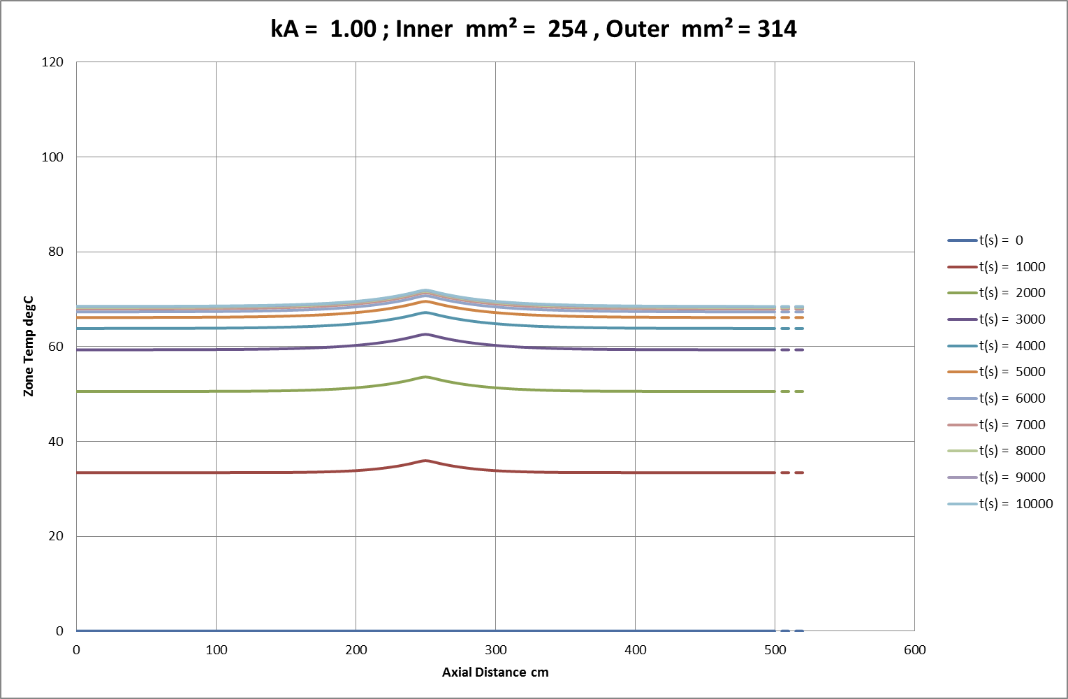 These stable behaviours, with respect to both time and axial distance along the conductor, are described by a set of solutions to the CDE comprising convergent exponential functions which provide an asymptotic approach to stability over both axial distance along the conductor and time. They are illustrated by the FEA results shown in the text below with Figs 02a-c.